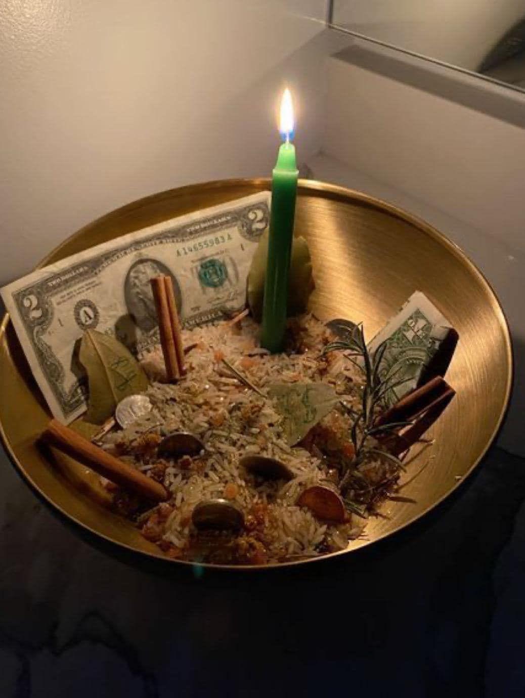 - Green or gold candles (representing wealth)